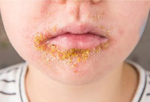 3. Have blisters that have popped and left crusty, golden-brown patches that could: